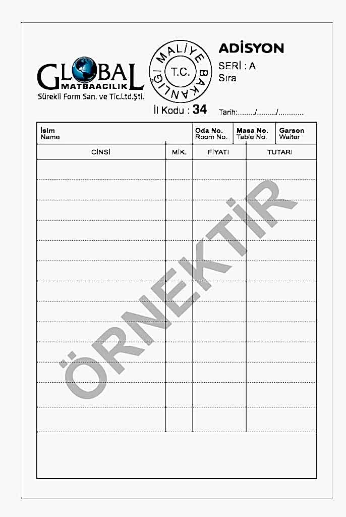 Adisyonlar, cafe ve restoranlarda sıkça kullanılan bir üründür ve siparişleri not etmek, hesapları tutmak için kullanılır. Adisyonlar, 1 asıl ve 1 kopya olarak üretilir ve üst kısmında perfore delikleri bulunur, böylece bir nüshasını müşteriye verirken diğer nüshayı da kasada saklama imkanı sağlar.